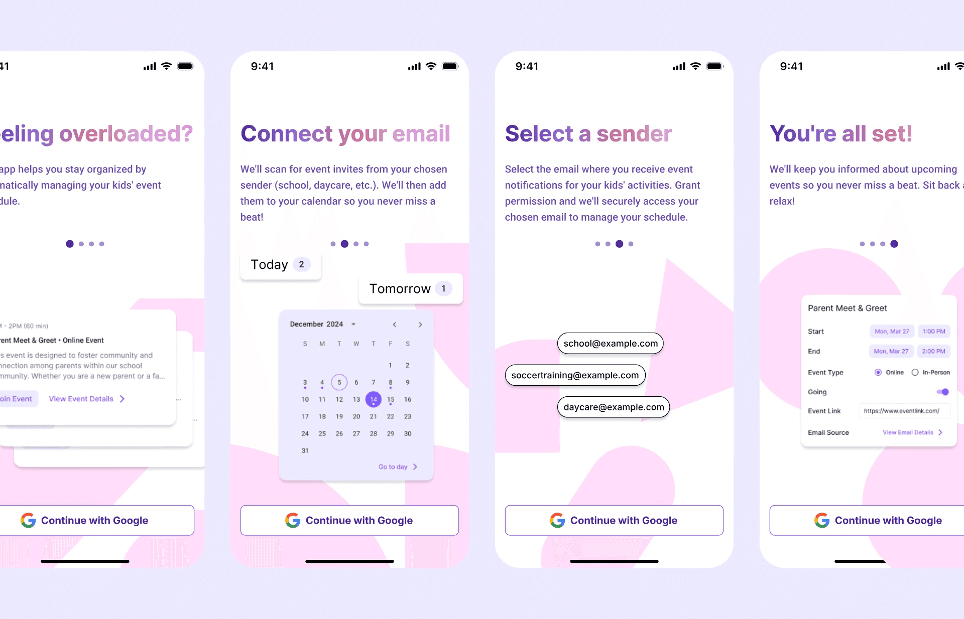 Modern moms—especially working mothers—are buried under invisible tasks: keeping up with school emails, remembering tournament dates, coordinating rides, managing snacks, doctor’s appointments, and more. ❝ Even with shared calendars, most of the planning still falls on me. I’m the default for everything. ❞ — User interview, mom of 2 The mental load is real. And most productivity apps still require you to manage them. 🎯 Goal To create an intuitive, time-saving tool that: Reads and organizes incoming info (especially emails) Creates a clean, digestible agenda by week/day Sends proactive reminders before important events Offers relief, not more admin work
